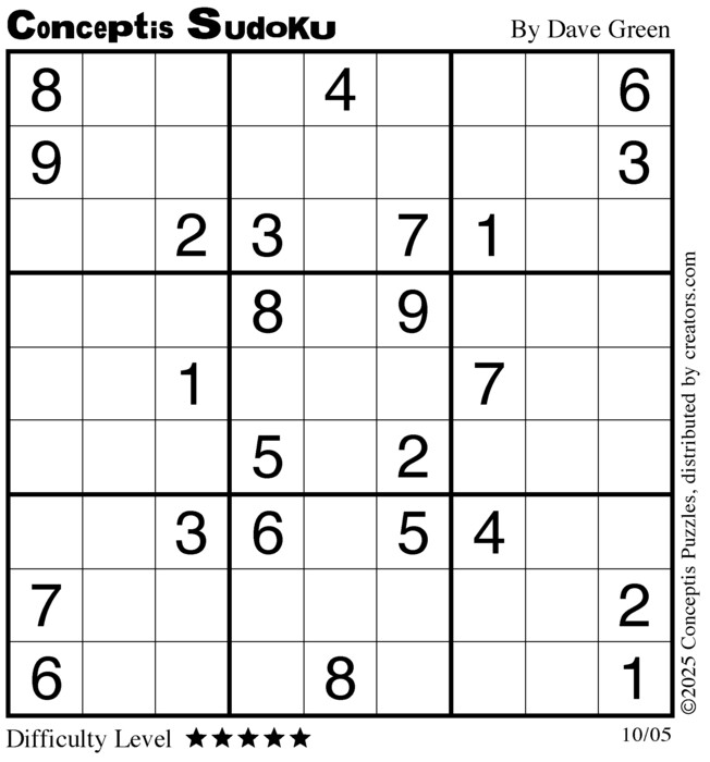 Each puzzle consists of a 9x9 grid containing given clues in various places. The object is to fill all empty squares so that the numbers 1 to 9 appear exactly once in each row, column and 3x3 box.